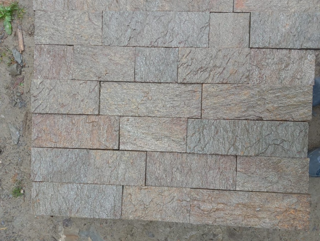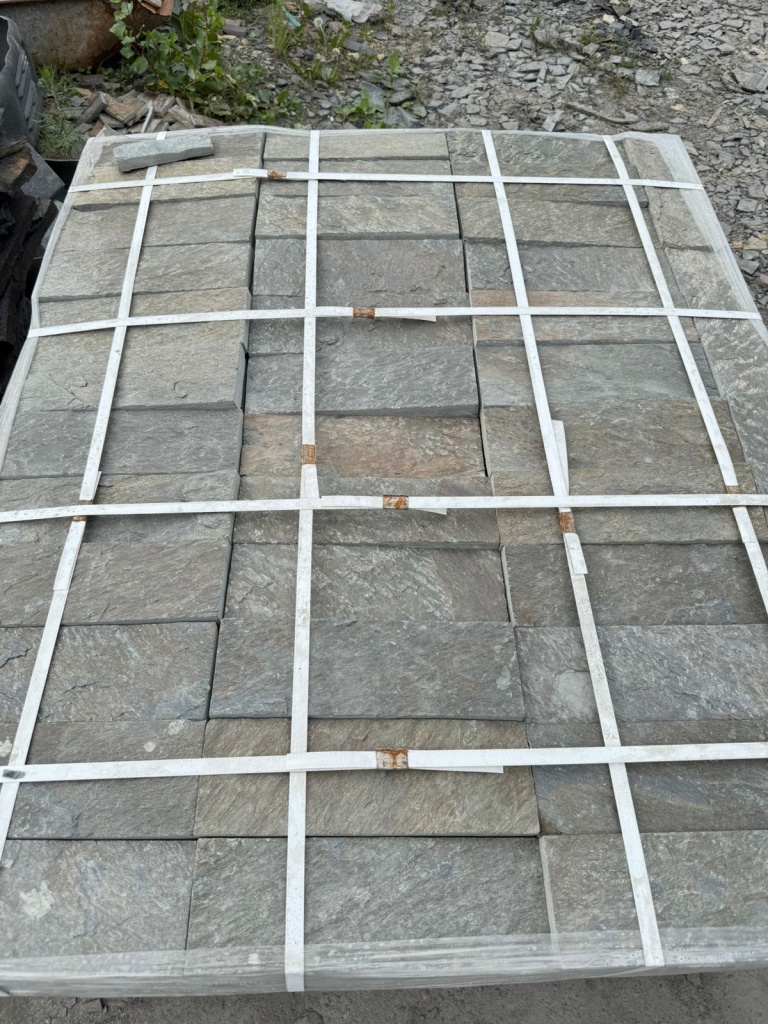 - необработанные плитки толщиной - 1,5-3 см. - по 30м2 на 1 поддоне - применяется в для облицовки вертикальных поверхностей, плитки от 2 до 3 см., благодаря цельной структуре и прочности камня, также можно применять для мощения дорожек, но только на бетонное основание.